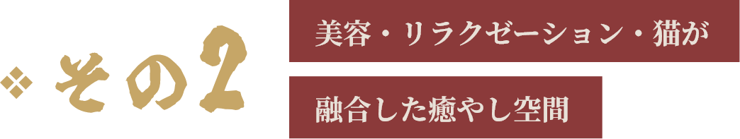 美容ケアやリフレクソロジー、ハンドトリートメントに加え、人懐っこい猫たちがお出迎え。